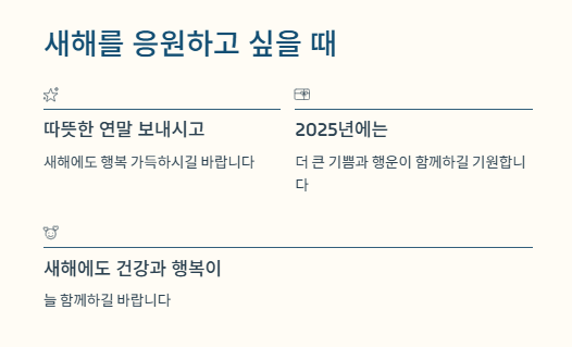 - 2025년에는 더 큰 기쁨과 행운이 함께하길 기원합니다.