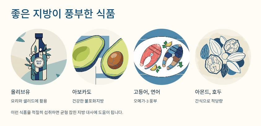 이런 식품을 적절히 섭취하면 균형 잡힌 지방 대사에 도움이 됩니다.