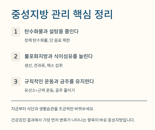 오늘은 전문가 관점에서 중성지방을 확실하게 낮추는 핵심 방법을 정리해드립니다.