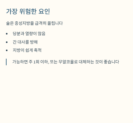 술은 중성지방을 급격히 올리는 가장 위험한 요인입니다.