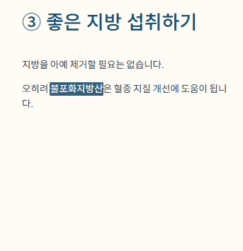 오히려 불포화지방산은 혈중 지질 개선에 도움이 됩니다.