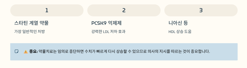 약물치료는 임의로 중단하면 수치가 빠르게 다시 상승할 수 있으므로
