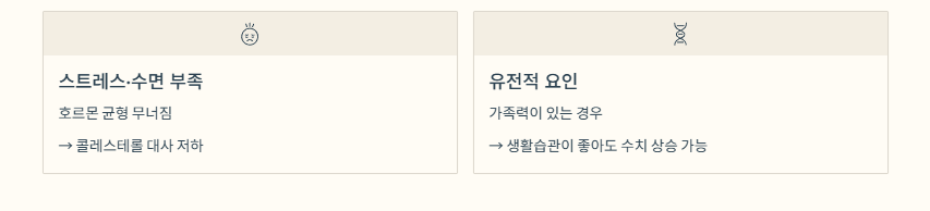 호르몬 균형이 무너지며 콜레스테롤 대사가 원활하지 않게 됩니다.