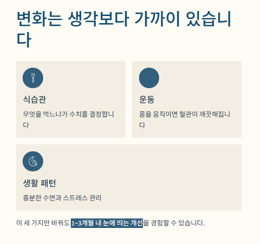 특히 콜레스테롤은 식습관·운동·생활 패턴만 바꿔도 충분히 개선될 수 있어