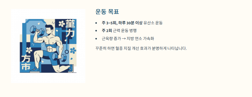 - 유산소 + 근력 운동 병행