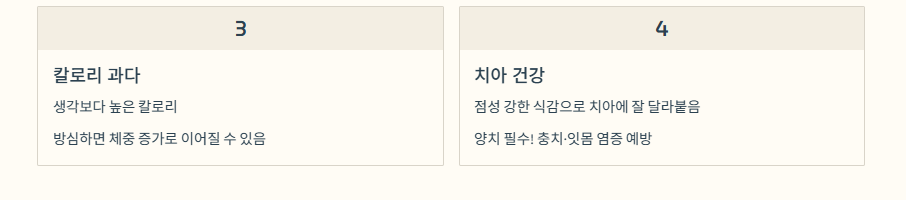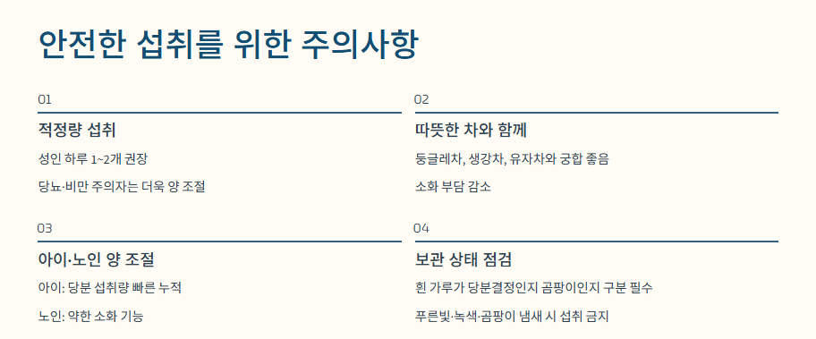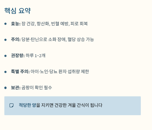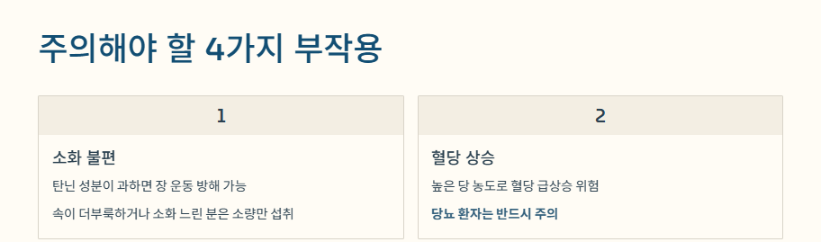 - 당분·탄닌으로 인한 소화 장애와 혈당 상승 주의