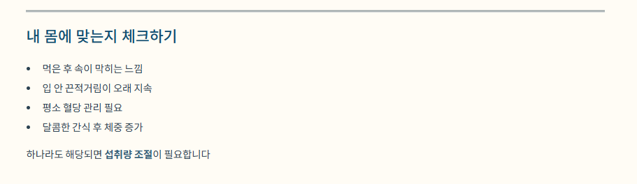이 중 하나라도 해당된다면 섭취량을 줄이거나 식후에 조금만 즐기는 것이 좋습니다.