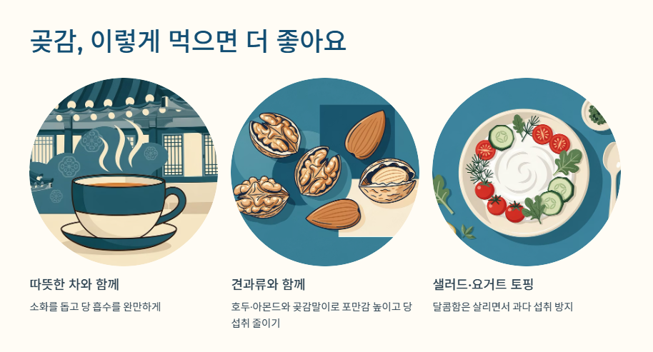 곶감은 단독으로 먹어도 맛있지만 영양적인 면에서는 조합을 함께 고려하면 좋습니다.