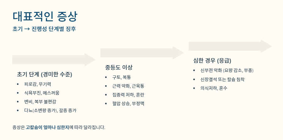- 고칼슘은 신장·심장·신경계에 직접적인 독성을 줍니다.