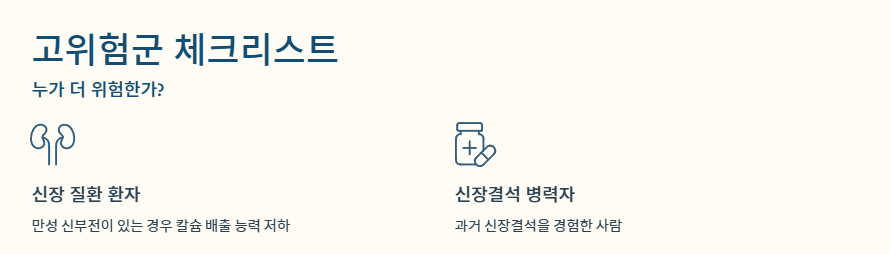 - 특정 질환(예: 과도한 칼슘 흡수성 질환) 보유자