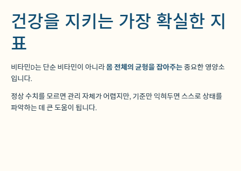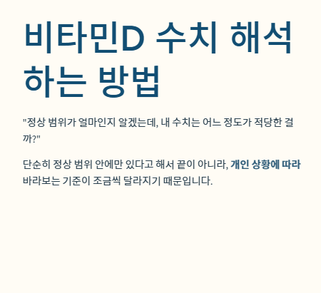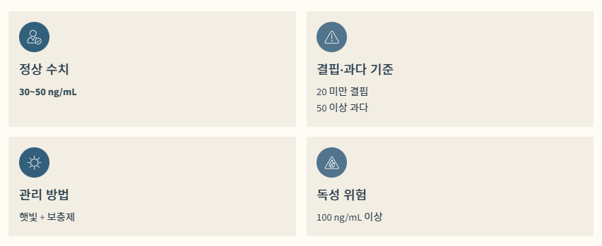 오늘은 비타민D 정상수치를 쉽게 이해할 수 있도록, 기준·해석·주의사항을 한눈에 정리해드립니다.