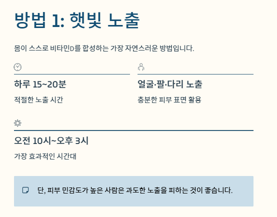 몸이 스스로 비타민D를 합성하는 가장 자연스러운 방법입니다.
