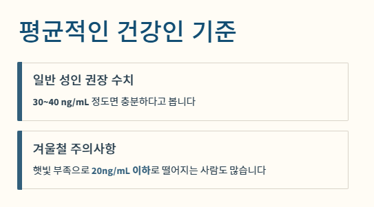 일반 성인은 30~40 ng/mL 정도면 충분하다고 봅니다.