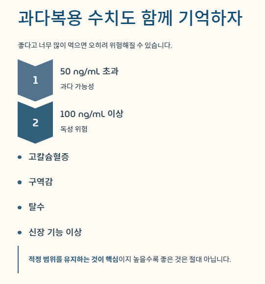 - 100 ng/mL 이상 → 독성 위험