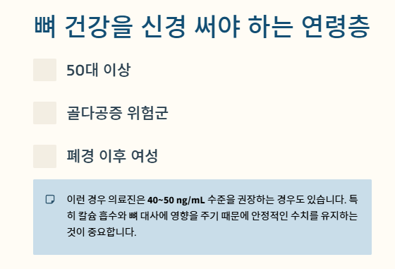 이런 경우 의료진은 40~50 ng/mL 수준을 권장하는 경우도 있습니다.