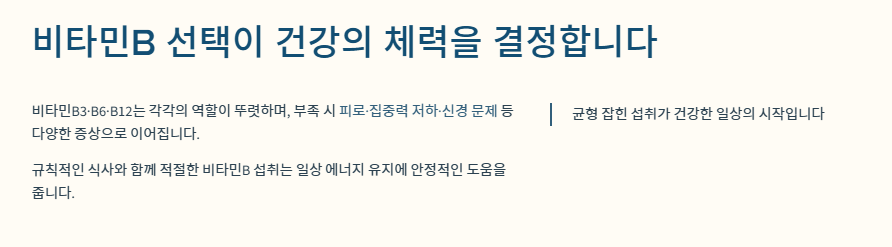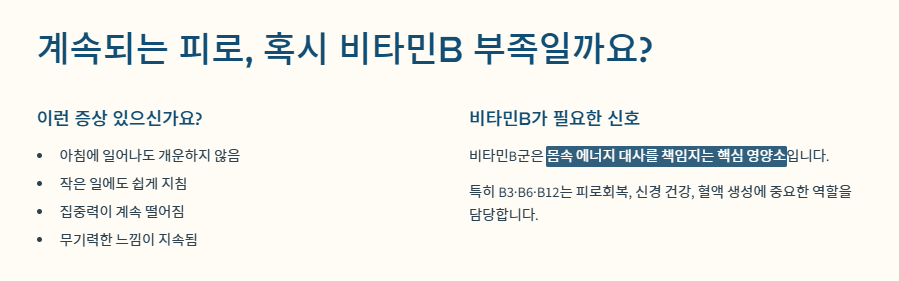 아침에 일어나도 개운하지 않고, 작은 일에도 지치고, 집중력이 떨어지는 느낌이 지속된다면 많은 분들이 “혹시 비타민B가 부족한 걸까?”라는 생각을 하게 됩니다.