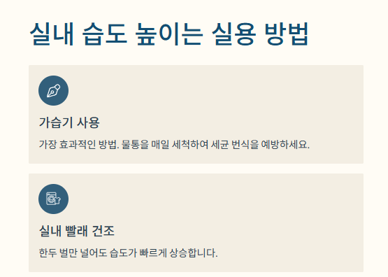 - 가습기·빨래 건조·환기 등으로 습도 조절
