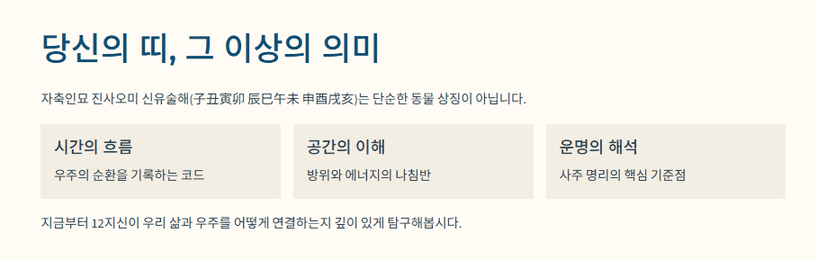 매년 새해가 되면 우리는 자신의 '띠'에 대해 이야기합니다. "나는 호랑이띠야", "우리 아이는 용띠래." 하지만 쥐(子)부터 돼지(亥)까지 이어지는 이 12가지 동물, 즉 **자축인묘 진사오미 신유술해(子丑寅卯 辰巳午未 申酉戌亥)**가 단순히 태어난 해의 동물을 의미하는 것을 넘어, 우리의 삶과 우주를 해석하는 동양 철학의 가장 핵심적인 기준점이라는 사실을 알고 계셨나요?
