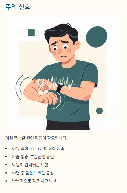 평소 맥박 변화를 관찰하고, 생활습관을 관리하며, 이상 신호가 지속되면 검사를 받는 것이 안전합니다.