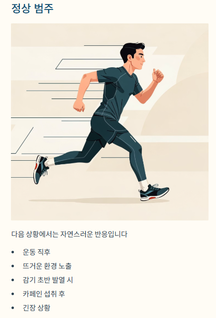 다음 상황에서는 맥박 증가가 자연스러운 반응입니다.