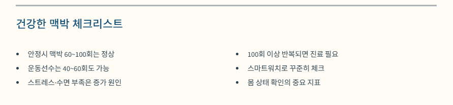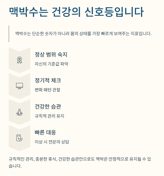 맥박수는 단순한 숫자가 아니라 몸의 상태를 가장 빠르게 보여주는 지표입니다.