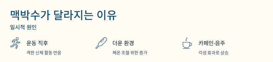 - 스트레스·수면 부족·카페인은 맥박 증가의 흔한 원인