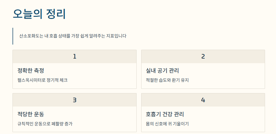 산소포화도는 거창한 의학 지표처럼 느껴지지만, 실제로는 내 호흡 상태를 가장 쉽게 알려주는 지표입니다.
