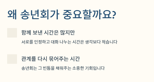 - 송년회: 지나간 1년을 정리하고 감사 표현