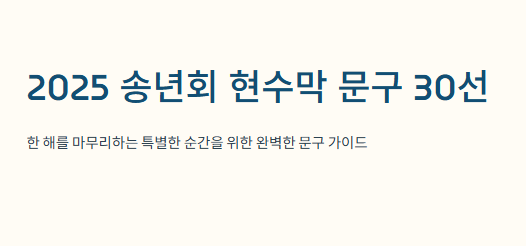 위에서 추천해 드린 30가지 문구들을 참고하여, 모임의 성격과 참석자의 취향에 맞는 최고의 문구를 선택하세요. 진심과 재치가 담긴 현수막 하나가 2025년 송년회를 더욱 특별하게 만들어 줄 것입니다.