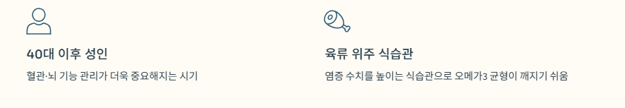 나이가 들수록 혈관·뇌 기능 관리가 필요하기 때문에 오메가3 중요성이 커집니다.