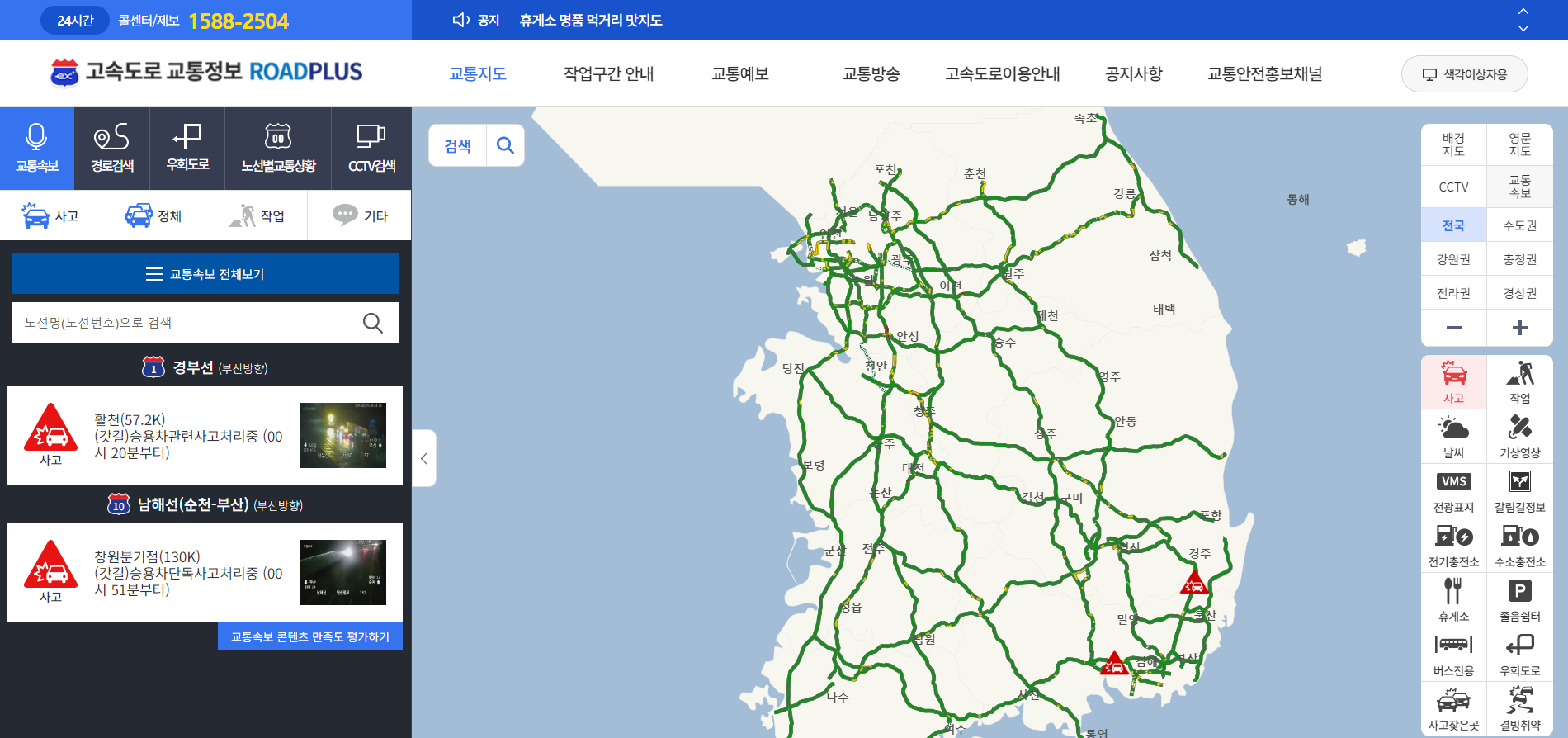 - 고속도로교통정보 ROAD PLUS 홈페이지에서 확인할 수 있습니다.