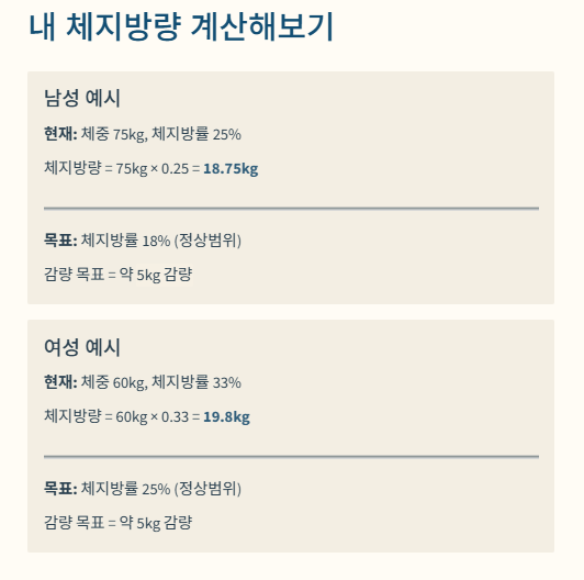 ✅ 체지방량 계산 및 목표 설정 예시