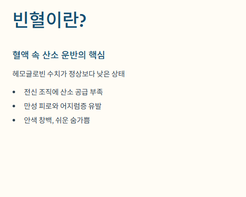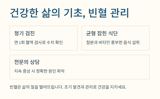 빈혈은 생명에 직접적인 위협이 되지 않는다고 여겨지기 쉽지만, 만성적인 피로와 면역력 저하, 심장 기능 부담을 증가시켜 삶의 질을 크게 떨어뜨립니다.