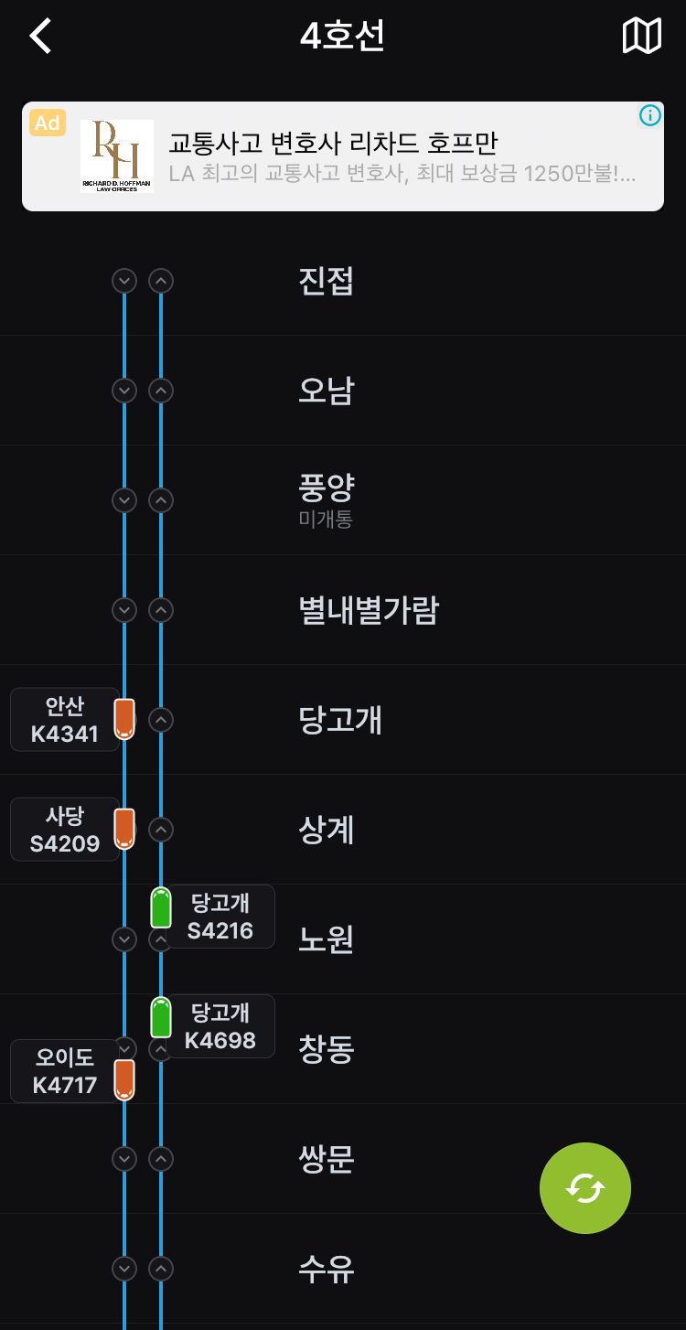 (1) 실시간지하철 이라는 어플을 통해 확인 가능합니다.