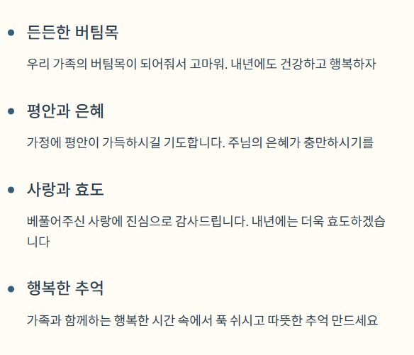 - "주님(또는 하늘)의 은혜가 충만한 연말연시 보내시기를 기도합니다. 가정에 평안이 가득하시길 바랍니다."