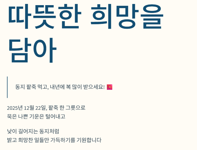 2025년 동지, 따뜻한 희망을 담아요!