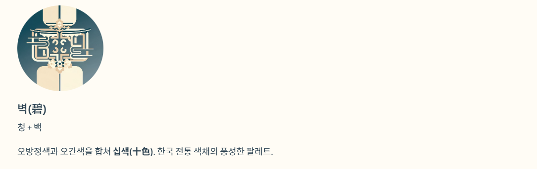 | 벽(碧) | 청(靑) + 백(白) | 하늘색 (옥색) |