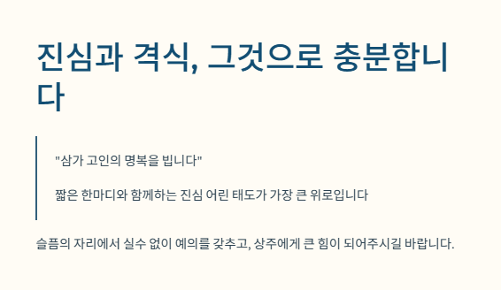 장례식 인사말은 단순히 문장을 전달하는 것이 아니라, 진심으로 슬픔을 나누고 위로를 건네는 소통입니다.