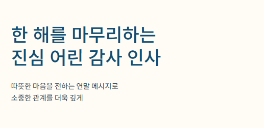 | 피크-엔드 법칙 | 경험의 전체적인 인상은 가장 강렬했던 순간(Peak)과 마지막 순간(End)에 의해 결정된다. | 한 해의 '마지막(End)'에 긍정적인 메시지를 전달함으로써, 관계 전체에 대한 좋은 기억과 미래의 기대감을 심어줍니다. |