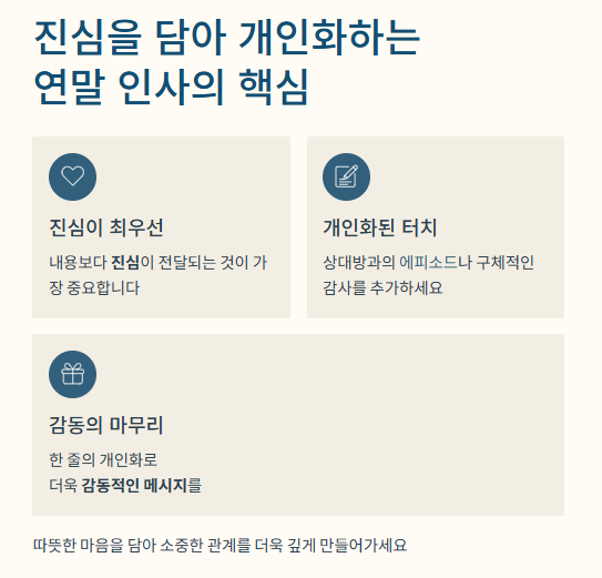 따라서 연말 인사는 '마무리'가 아닌, '새로운 시작을 위한 밑거름'임을 기억하고 정성을 들여야 합니다.