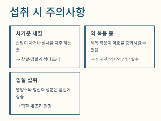 - 약 복용 시 주의: 녹두의 강력한 해독 작용은 한약이나 특정 양약의 성분까지 중화시켜 약효를 떨어뜨릴 수 있습니다. 치료 목적으로 약을 복용 중이라면 섭취 전 의사나 한의사와 상담해야 합니다.