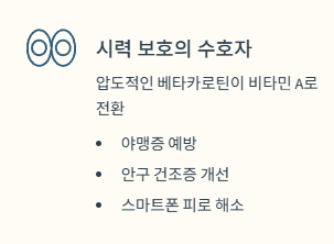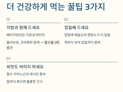| 베타카로틴 | 매우 높음 | 항산화, 비타민 A 전환, 눈 건강 |