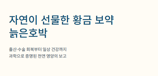 "출산 후나 수술 후, 왜 사람들은 가장 먼저 늙은호박을 찾을까요?"