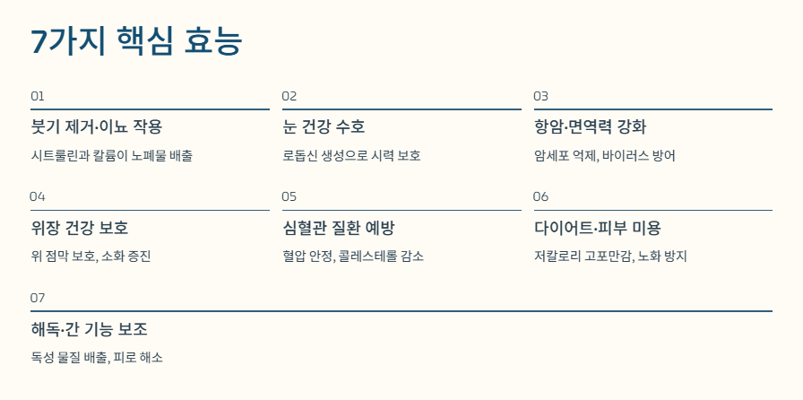 | 핵심 성분 | 주요 기능 | 건강상 이점 |