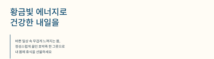 자연이 정성껏 익혀준 이 황금빛 에너지는 당신의 건강한 내일을 지탱하는 든든한 밑거름이 될 것입니다.