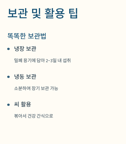 - 냉동 보관: 장기 보관이 필요하다면 소분하여 냉동하세요. 해동 후 샐러드 토핑이나 우유와 함께 갈아 '단호박 라떼'로 드시면 좋습니다.