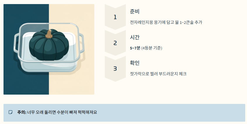 - 시간: 4등분 기준 약 5~7분 (호박 크기에 따라 가감).