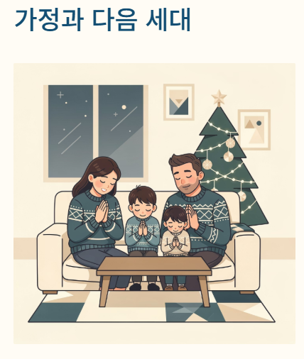 - 부모의 사명을 위한 기도: "부모가 먼저 주님의 사랑을 실천하여 가정 안에서 신앙의 유산이 흐르게 하옵소서."