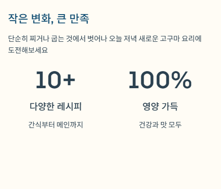 "박스째 사둔 고구마, 줄어들 기미가 보이지 않나요? 당신의 식탁을 풍성하게 바꿀 '고구마 요리'의 세계로 초대합니다."