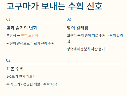 2. 고구마가 보내는 수확 신호: 눈으로 확인하는 3가지 징후